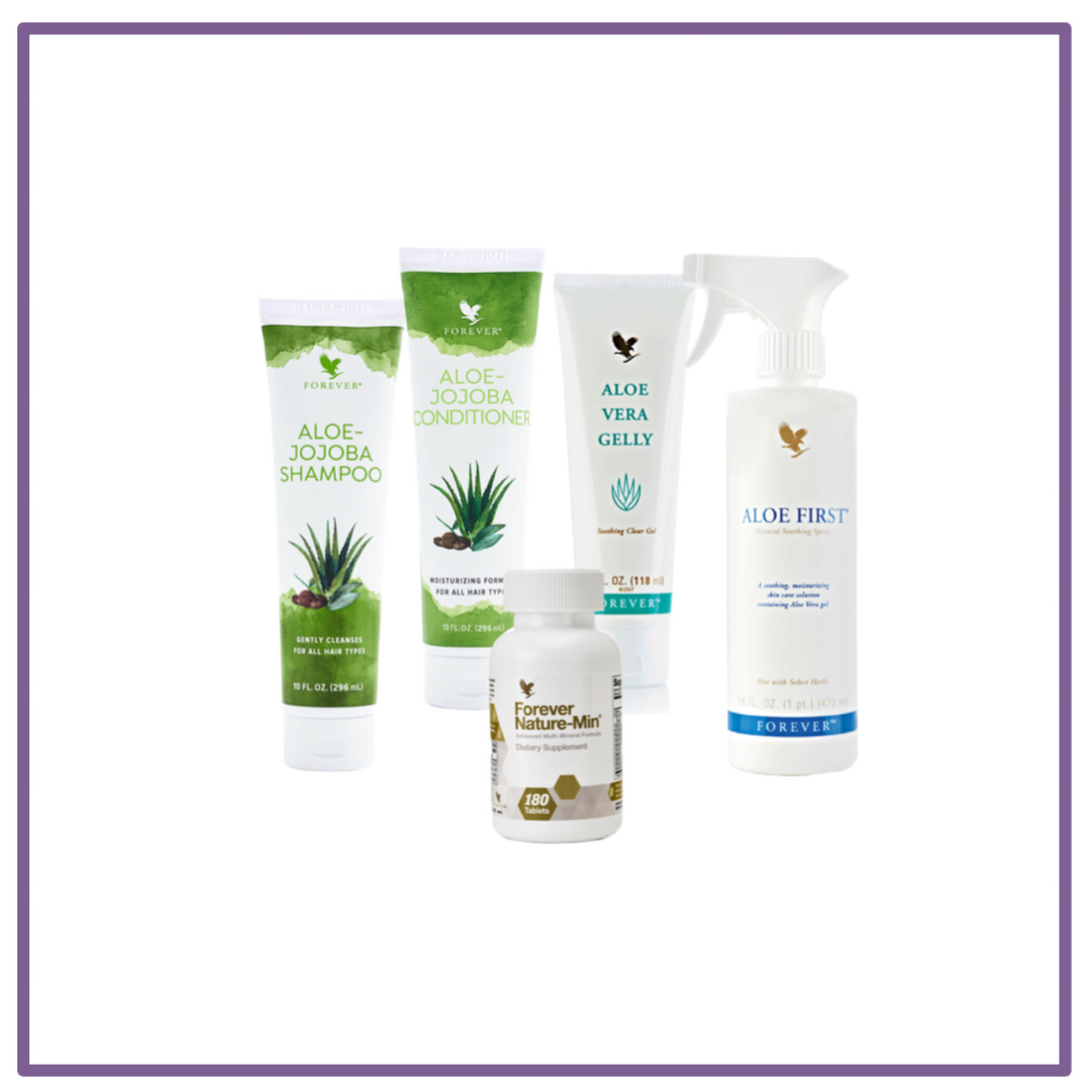 مجموعة متكامله لمنع تساقط الشعر والحفاظ على نعومته والترطيب الداخلي والخارجي مكونه من شامبو وبلسم وجل انبات الشعر وحبوب فيتامينات ومعادن لدفع الشعر والحفاظ على الصحة العامة .